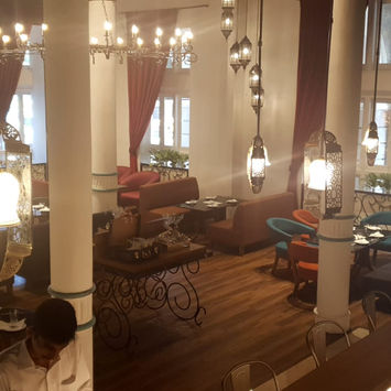 Located at Fort, Mumbai, Hurrem's is curated with rare zest and vision. “The name Hurrem's itself denotes luxury, extravagance and royalty which are some of the core elements of Turkish culture. Large turquoise windows employed in the cafe section create an interesting feature and a cool contrast to the warm environment. It also imparts an illusion of depth, making the space seem larger than it already is. The colour itself is typically associated with calmness and serenity, two things the architects wanted the guests to experience when at Hurrem's.